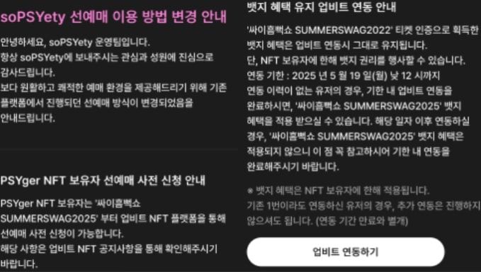 대상: PSYger NFT보유자(업비트 연동 및 본인인증 필요)